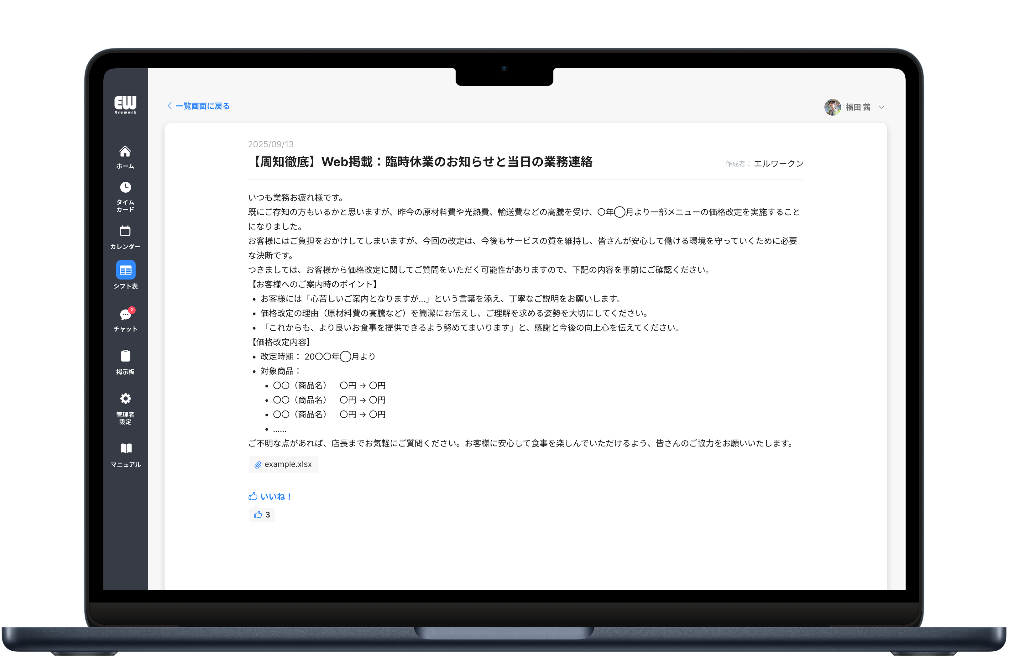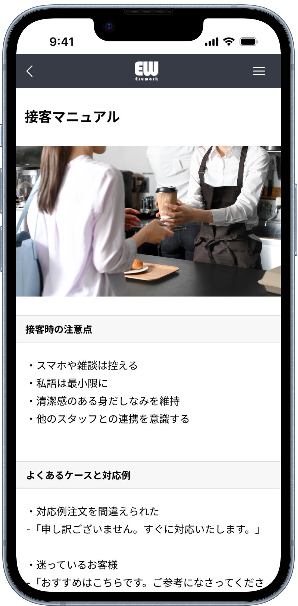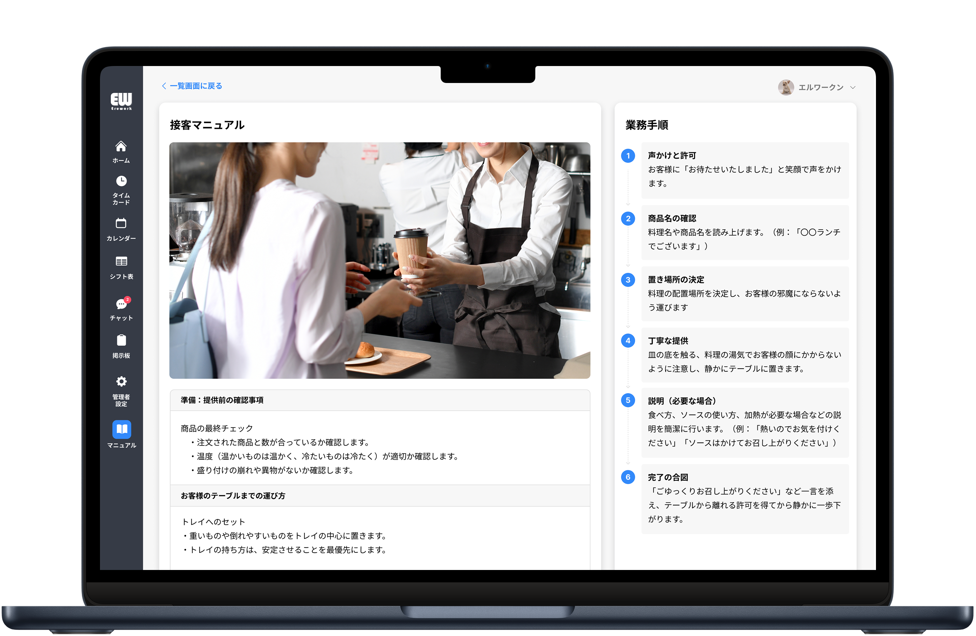 アルバイトが安心して働ける職場は生産性の向上にもつながり、エルワークひとつでスタッフは迷わず働け、経営者は効率的に職場を管理・環境提供をすることができます。