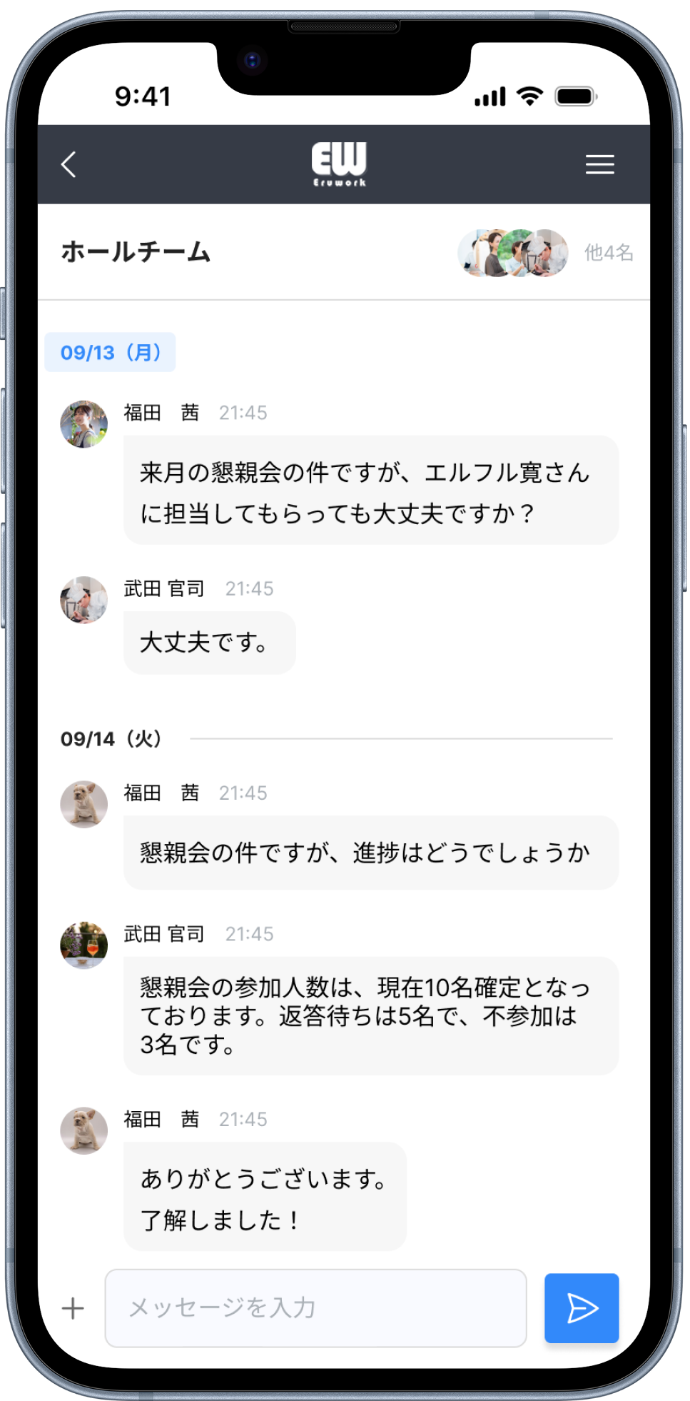 「働きやすい環境」をサポートすることに重点を置き、従業員はスマホやPCから簡単に情報を確認したり、コミュニケーションを